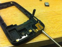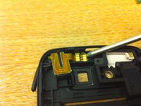 Insert object into the headphone socket and force object downwards to remove headphone connector (it pops up at the back), perhaps inserting a headphone jack instead of a screwdriver would have been better!